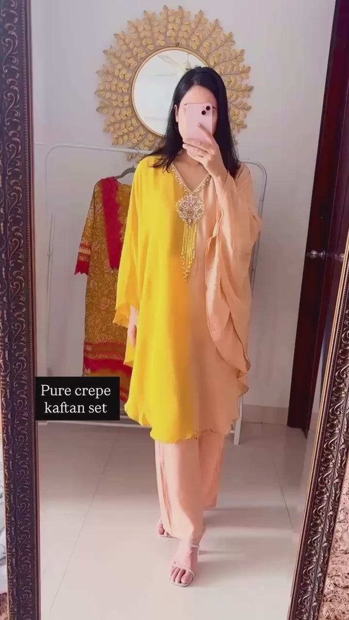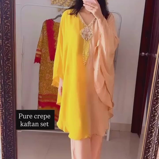 Two Piece Kaftan Set in pure crepe fabric perfect for festive occasions.