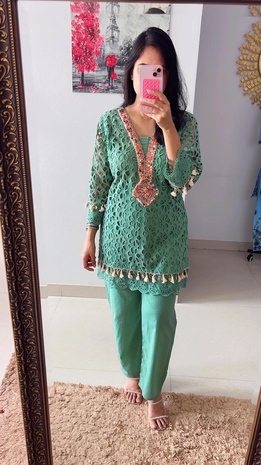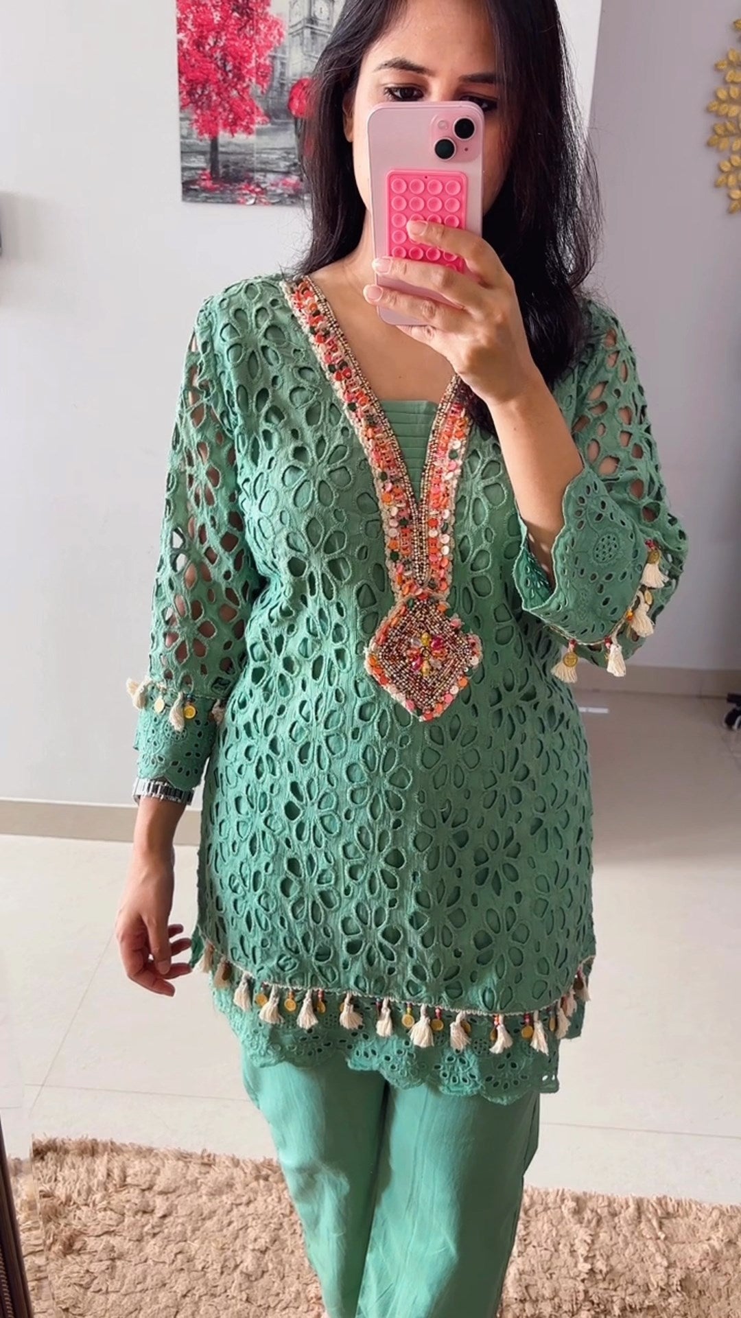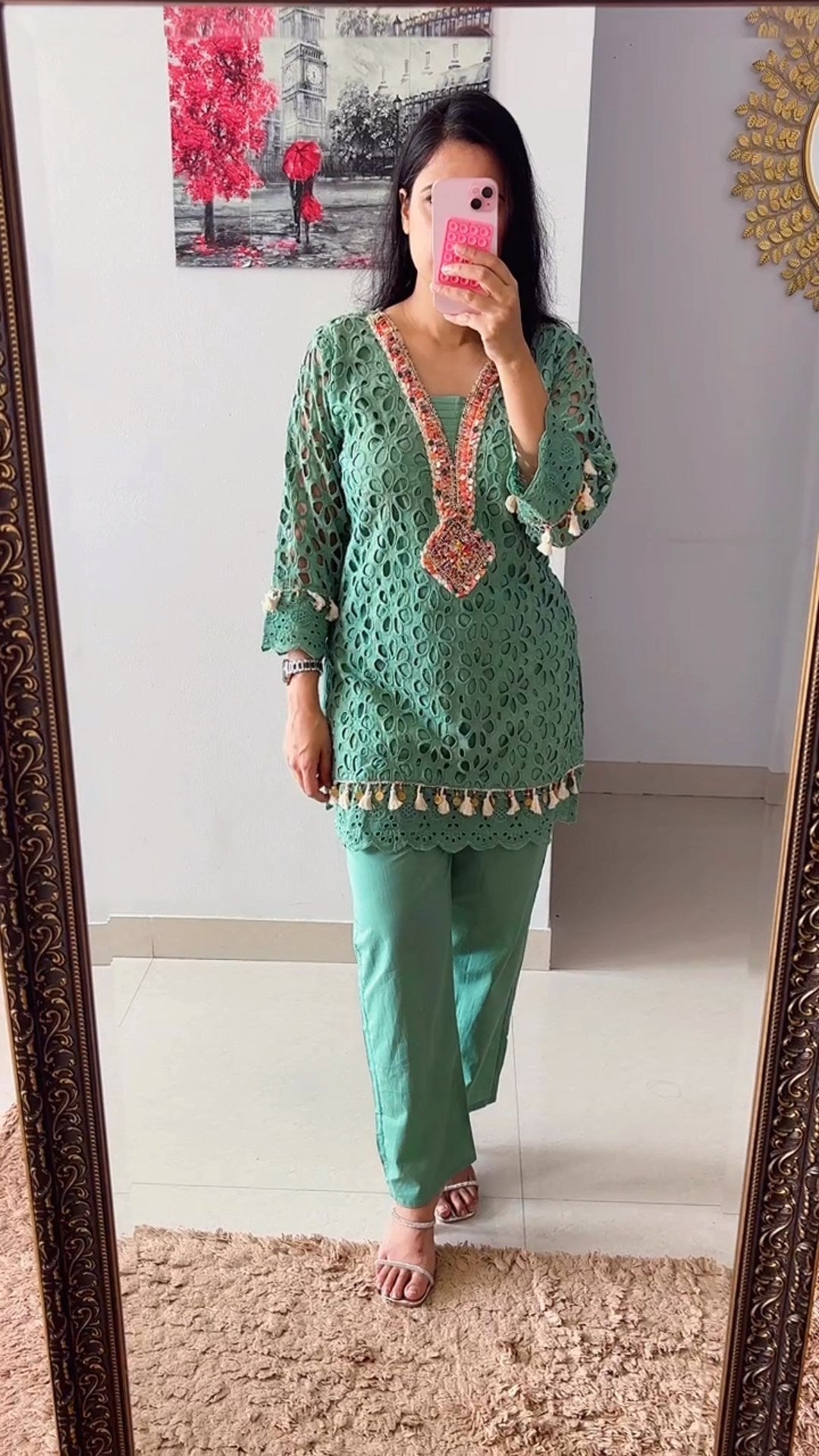 Dusty Green Schiffli