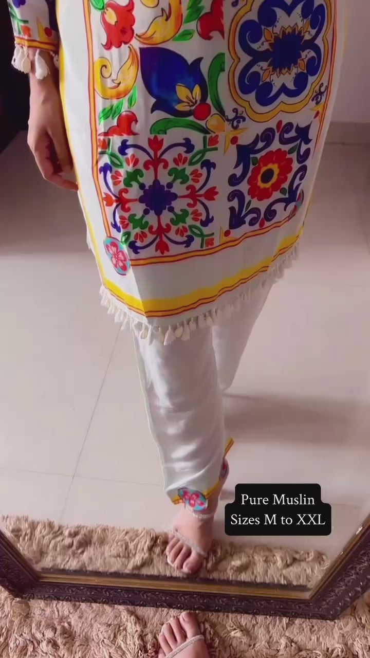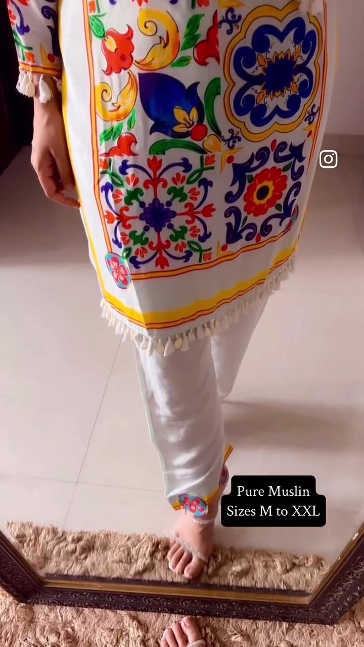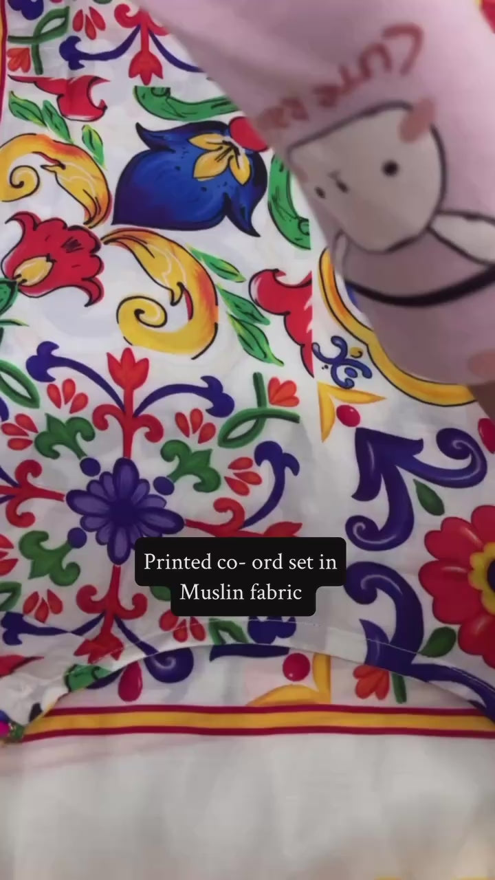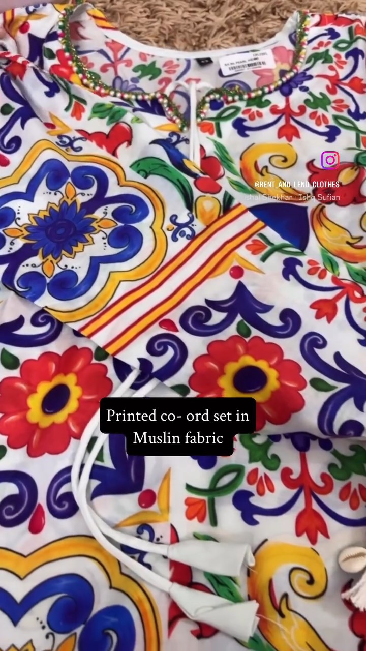 A stylish rainbow Coord set featuring soft muslin fabric and elegant pearl work on the top. Comes with straight-fit pants for a clean, comfortable look—perfect for everyday wear or casual outings.