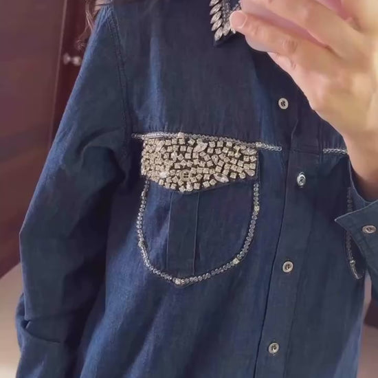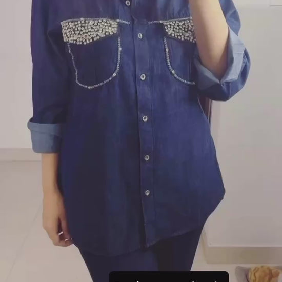 Featuring Swarovski detailing on the shirt, paired beautifully with straight pants.